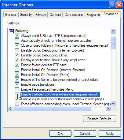 Adjusting your browser’s advanced